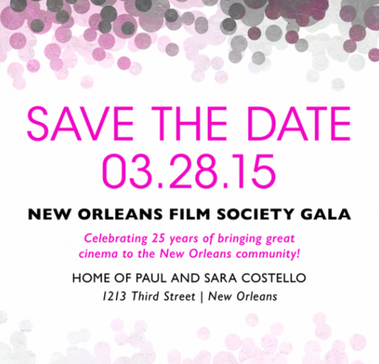 The New Orleans Film Society Gala, traditionally held in the fall, will be held this spring at the home of Paul and Sara Ruffin Costello at 1213 Third Street. Help celebrate twenty-five years of bringing great cinema to the New Orleans community.