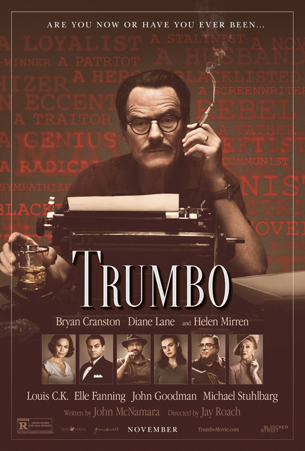 He still managed to work under pseudonyms and even won two Academy Awards while blacklisted, for writing The Brave One and Roman Holiday. Directed by Jay Roach, Trumbo stars Cranston, Helen Mirren, Diane Lane, Elle Fanning, John Goodman, Louis C.K. and James DuMont. The film is set for an awards season release on November 5.