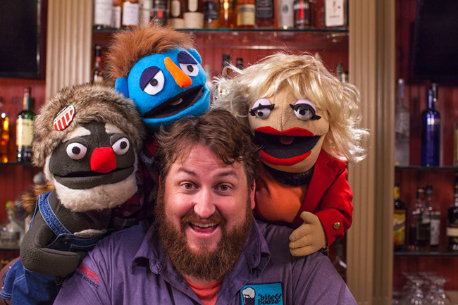 Talley and Ducote developed the concept several years ago as a way to use the free alcohol sent to Ducote by companies wishing to be featured on BiteandBooze.com. The resulting 12-episode series is a hilarious snippet of barroom life, with the tipsy puppets offering a teasing look at the culture surrounding beer and spirits.